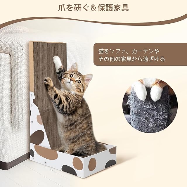 商品名:ComSaf 猫爪研ぎ 段ボール 猫用爪とぎ 猫用L字型スクラッチャー縦型 猫つめとぎダンボール 壁 ストレス解消 固定 組み立て簡単 三花柄