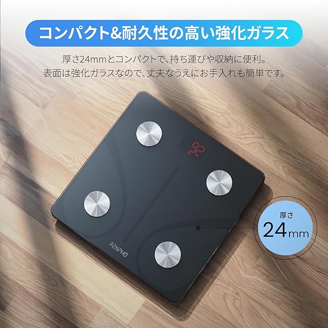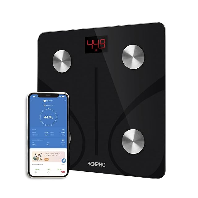 商品名:RENPHO Elis 1 スマート体組成計 ブラック 体重計 レンフォ 第二世代 Bluetooth接続 13項目測定可能 高精度 体脂肪計 強化ガラストップ 自動電源ON/OFF 日本語アプリ Renpho Health 健康管理 スマホ連動 登録人数無制限 体組成計 日本語取扱説明書 スリム 収納 データ管理 BIA技術 強化ガラス ES-CS20M