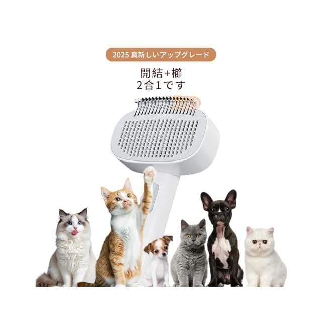 商品名:【2 in 1 ペット用コーム】猫 ブラシ 多機能ペット用コーム 猫用コーム ワンクリック脱毛 お手入れ簡単 もつれ解消コーム 調節可能 多機能 抜け毛・もつれ取りブラシ 猫・犬用 短毛種・中毛種・長毛種 種用