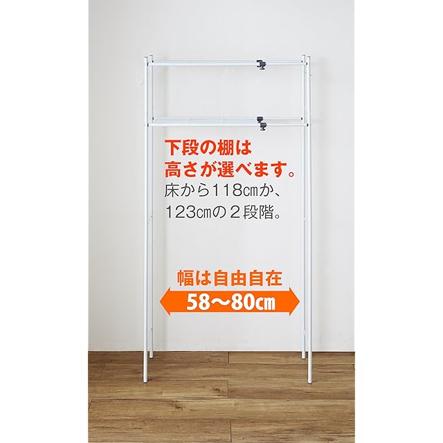 【特徴】伸縮式なので、いろんなサイズの洗濯機に。ハンガーパイプ付き。