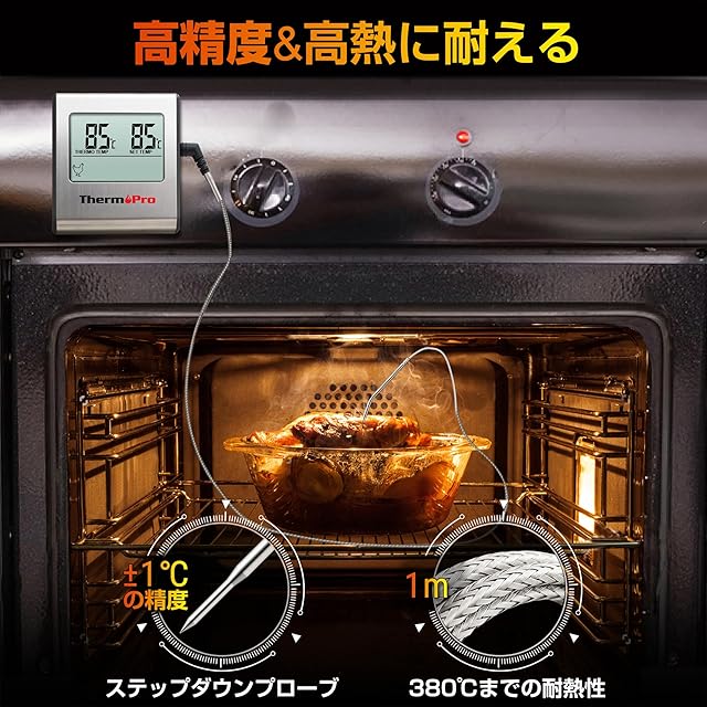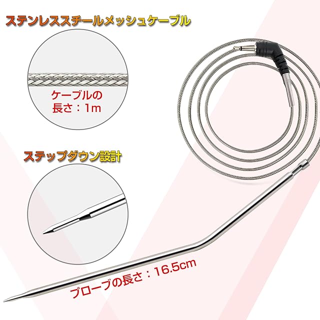 操作しやすい:段差付きのデザインと16.5cmのステンレス鋼製のプローブを使うため、正確かつ迅速に温度値を取得できます。オーブンのドアの隙間からセンサーを通すことが出来ます。