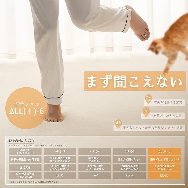 【遮音レベルΔLL(Ⅰ)-6】優れた遮音性能を持つカーペットで、子供やペットがカーペット上で走り跳ねても、ほとんどの音を軽減し、静かでリラックスした生活環境を提供します!