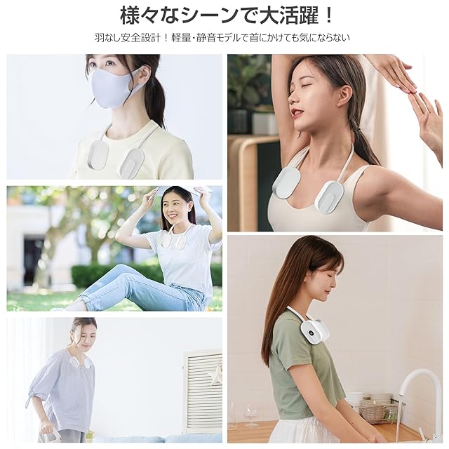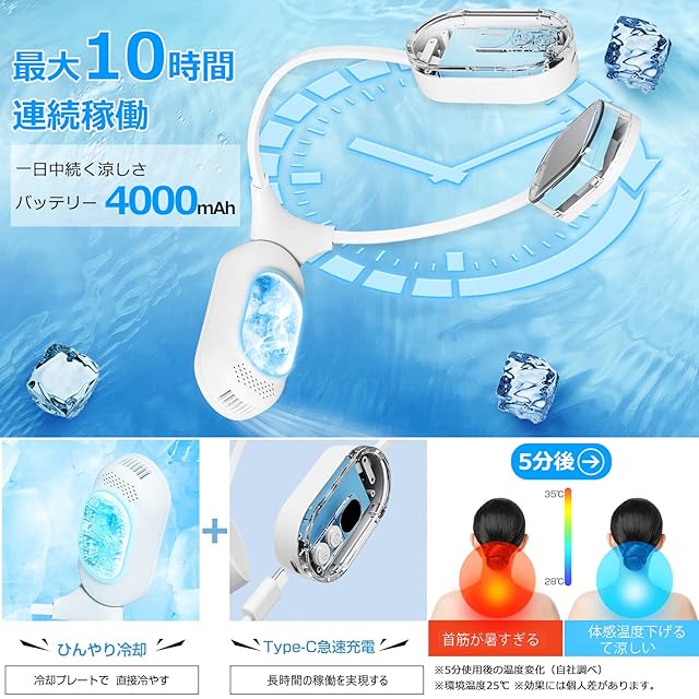 商品名:首掛け扇風機 ネッククーラー 瞬間冷感 【2025首後冷却・送風】ネックファン 巻き付け収納 USB充電式 静音 背中 強冷ファン 極軽量 収納ポーチ付 3段階風量・冷却モード 4000mAh 10時間連続動作 蒸れ解消 暑さ対策 節電 省エネ PSE認証済み WEARABLE COOLING FAN 羽根なし (ホワイト)