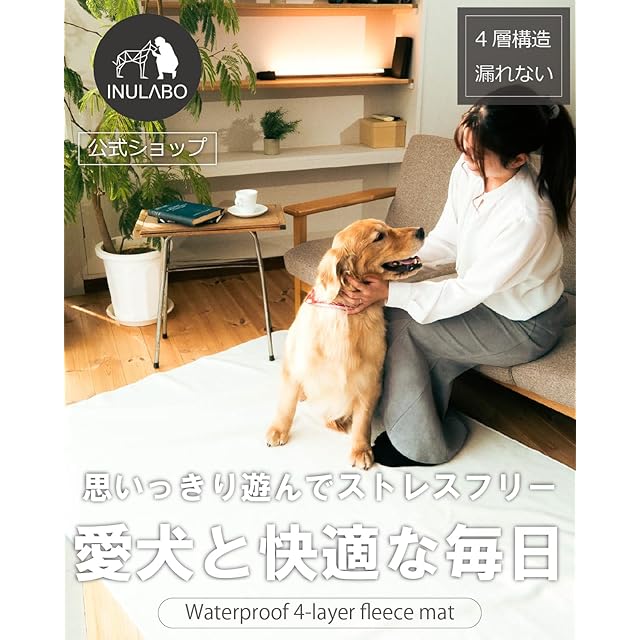 商品名:INULABO(イヌラボ) 洗える ペットシーツ 特大 おしっこマット 防水 床保護 ペットマット 丸ごと洗える 【わんこが思いっきり遊べる】 (182×182cm(1枚), ホワイト)