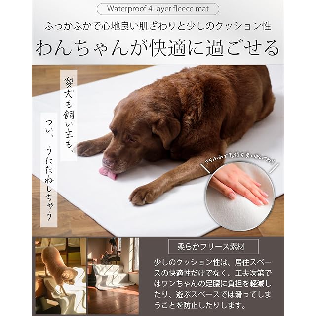 【防水だから、大切なものを徹底保護】 高品質フェルトと、防水コーティングポリウレタン生地で、マットの下を完全保護します大切な車や家具に敷いて、わんこの自遊空間を広げられます