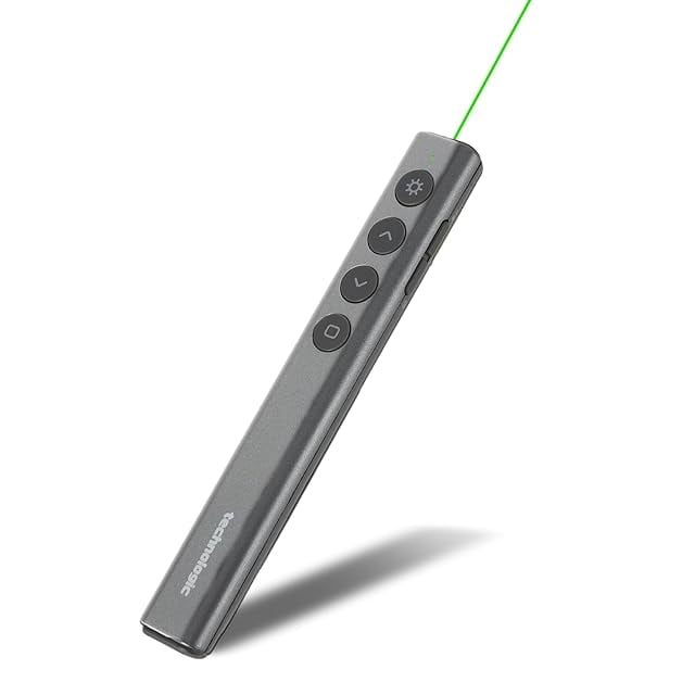 高スペックなのにこの価格!?<br> グリーンレーザーでしかもPCの遠隔操作も可能<br> 「レーザーポインターミドリちゃんSlim」<br><br> 【 「レーザーポインターミドリちゃんSlim」3つの特徴】<br> 1.視認性が赤色の8倍明るい緑色レーザーを採用<br> 2.スライドのページ送りの遠隔操作が可能<br> 3.スタイリッシュでスリムなデザイン<br><br> 【視認性が高い緑色レーザー光を使用】<br> 人間の目は自然と緑色の光を好むと言われています。本製品の532nmの緑のレーザー波長は、目の感度ピークである555nmに近く、赤色レーザーよりも約8倍明るく見えます。<br> 視認性が高いから、ピンポイントの正確さを提供し、スクリーン上の重要なデータを強調したり、ホワイトボード上のポイントを的確に指摘したりするのに最適です。<br><br> 【ワイヤレスリモート機能搭載】<br> ワイヤレスリモート機能を搭載しており、プレゼン資料のページ送りなど遠隔からのパソコン操作が可能です。<br> あなたのプレゼンテーションをよりダイナミックにし、聴衆を引き込みます。<br> プラグアンドプレイ対応で、本製品に付属するレシーバーをパソコンに挿入するだけで、遠隔操作が可能です。複雑な設定は不要。簡単に始められるので、プレゼンテーションのストレスを忘れ、自信を持って発表できます。<br><br> 【スタイリッシュでスリムなデザイン】<br> ミドリちゃん Slimはスタイリッシュでスリムなデザインが魅力です。手に取った瞬間から洗練された印象を与え、あなたのプレゼンテーションにプロの要素を加えます。<br> この製品はコンパクトなサイズを誇り、胸ポケットにもすっぽり収まるほどの軽量さです。持ち運びに便利なので、どこへでも簡単に持ち出せます。プレゼンテーションの場所やシーンを選ばず、いつでも自信を持って持参できます。<br><br> 【他にもこんな使い方】<br> ゴミ箱を漁る憎いカラスの効果的な撃退方法として使えます。<br> 可愛いペットのおもちゃとして。明るい緑色のレーザー光に瞬時に反応し、追いかけっこやジャンプの楽しさを提供します。<br><br> 【仕様】<br> 商品名:テクノロジック「レーザーポインターミドリちゃんSlim」<br> パッケージ内容:製品本体(ワイヤレスレシーバー付き)、専用キャリングケース、書兼取り扱い説明書<br> 寸法:14.1cm×2.1cm×1.4cm<br> 重量:約24g<br> レーザー光:緑色<br> バッテリー:乾電池単4形<br> 制御距離:最大50m(ご利用の環境によって実際の距離は異なります)<br> レーザー距離:約200m(ご利用の環境によって実際の距離は異なります)<br> 対応OS:Windows、Mac OS<br> 動作確認済ファイル:Power Point、Google Slide、Adobe Reader(PDF)