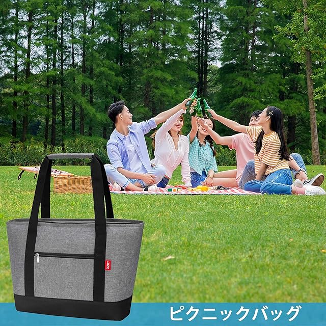 LHZK 保冷バッグ エコバッグ 折りたたみ式 トートバッグ ランチバッグ 28L大容量 買い物バッグ 保冷バック 大型 保温 バック アウトドア ピックニック バーベキュー ビーチ キャンプ 通勤 (グレー)