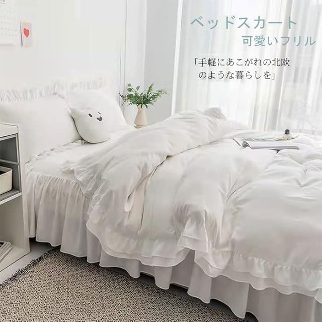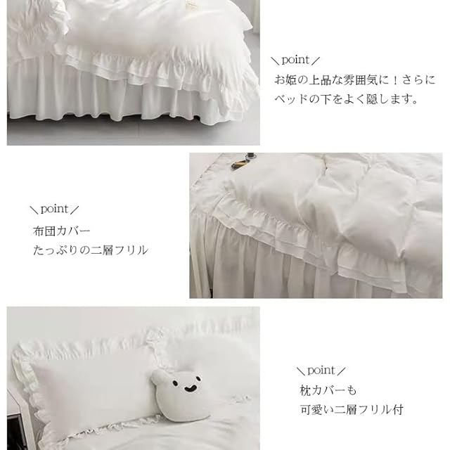 商品名:布団カバーセット フリル 寝具カバーセット 3点セット ベッドカバー 可愛い 洗える 掛け布団カバー ボックスシーツ 枕カバー かわいい 布団かばー アイボリー 洋式・和式兼用 ふとんかばー ふとんカバー しんぐる (ホワイト, シングル*3点セット)
