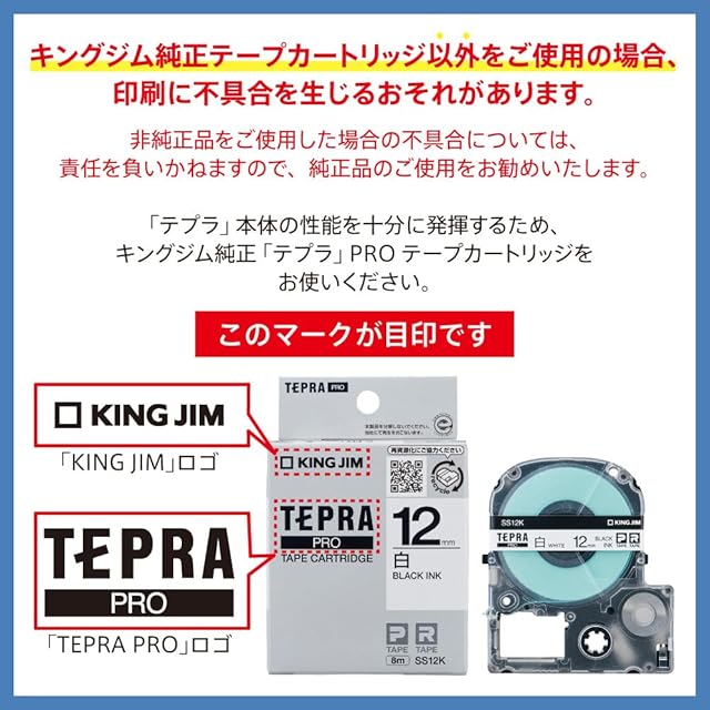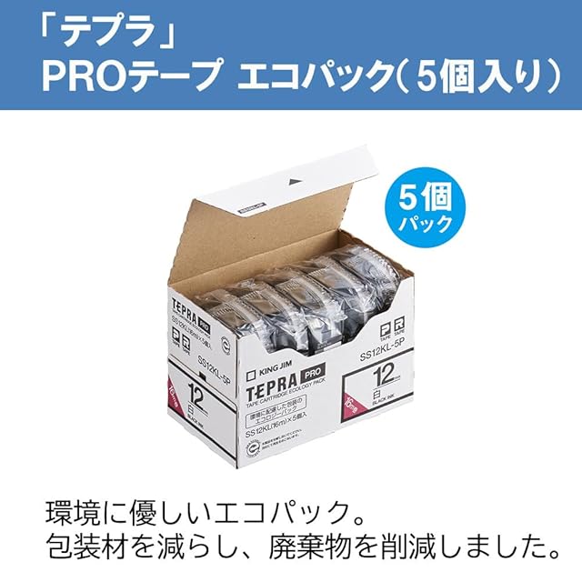 商品名:キングジム 【純正】 テプラPROテープカートリッジ エコパック5個入 12mm 白ラベル/黒文字 ロング 長さ16m SS12KL-5P