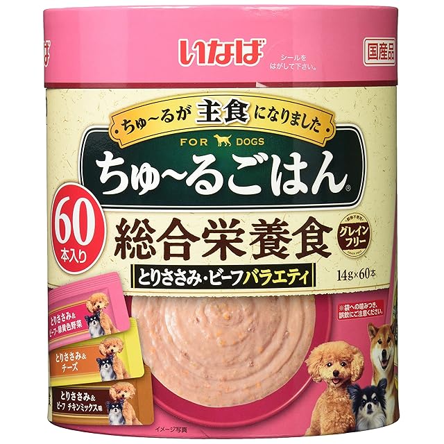 商品名:いなば ちゅ~るごはん とりささみ・ビーフバラエティ 60本 総合栄養食 犬用おやつ