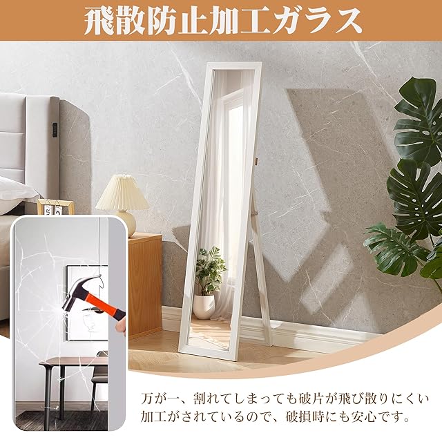 【スタンド式全身鏡】スタンド付きで、どこにでも立てかけてご使用いただけます。出かける前のコーディネートの必需品!