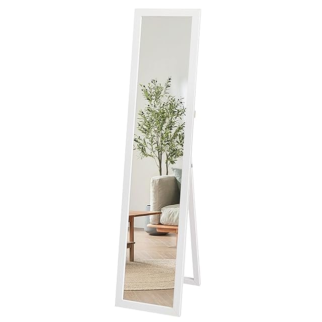 VECELO 姿見 全身鏡 スタンドミラー 117*27cm ホワイト 全身ミラー すがた鏡 折りたたみ 立て掛け 木製フレーム 飛散防止加工 シンプル