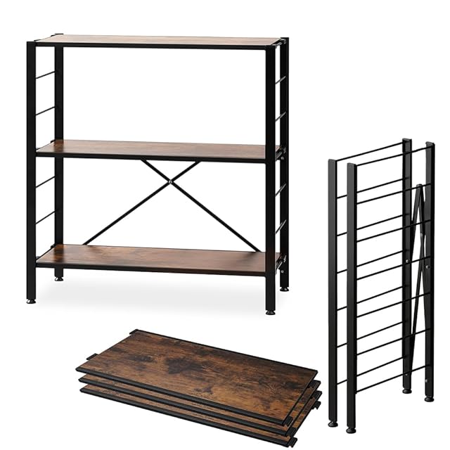 【広げるだけで組立簡単】アイリスオーヤマ スチールラック 棚板の連結で使い方は自由自在 連結 可動棚 オープンシェルフ ラック 幅:76cm 3段 ヴィンテージブラウン KRSR-3