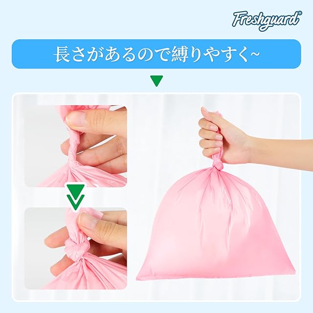 【縛りやすい】ニオイの元を袋に入れたら、長さがあるので、クルクルねじってキュッと結んでゴミ箱に捨てるだけ。