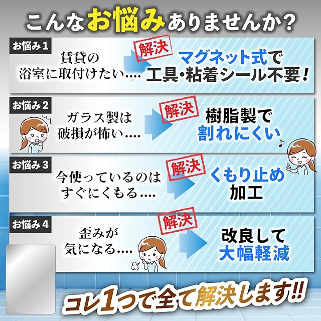 ✅【商品基本仕様】ココミラーCocoMirror購入のお客様の要望におこたえして、浴室専用の割れない鏡、CocoMirror Bath を開発いたしました。1.曇り止め加工、 2.強力マグネット式、3.こだわりの映像、4.割れない、5.ハードコート加工(汚れ・傷防止)の特徴があります。※曇り止め加工をしていますが全くもらないわけではありません。曇った際は水をかけてください。