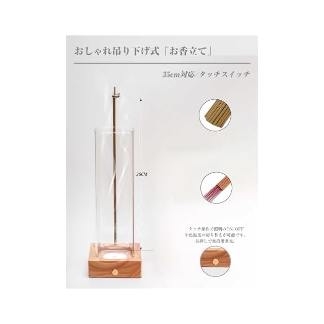 商品名:お香立て おしゃれ 線香立て LEDアンビエントライト付き お香たて 灰がこぼれない USB充電式 3色切替 明るさ調節可能 ガラスインセンスホルダー 家庭 オフィス 露营 冥想 リラックスに適したおしゃれな香炉