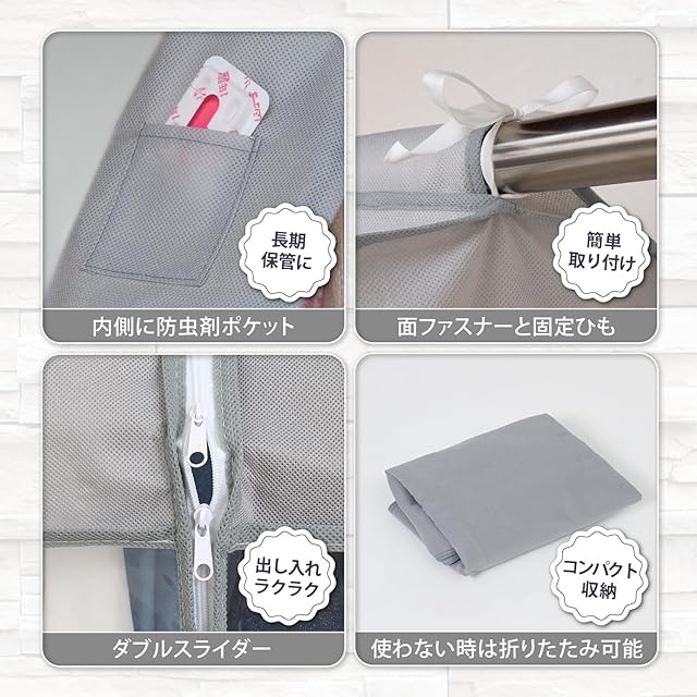 【衣類をまとめて保管】:オフシーズンの洋服をまとめてホコリなどの汚れから守ります。5~7枚までの衣類の保管が可能。