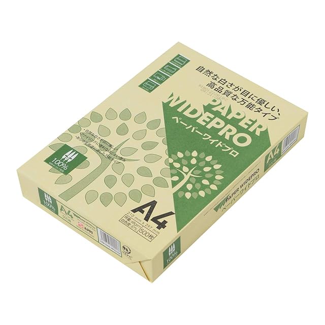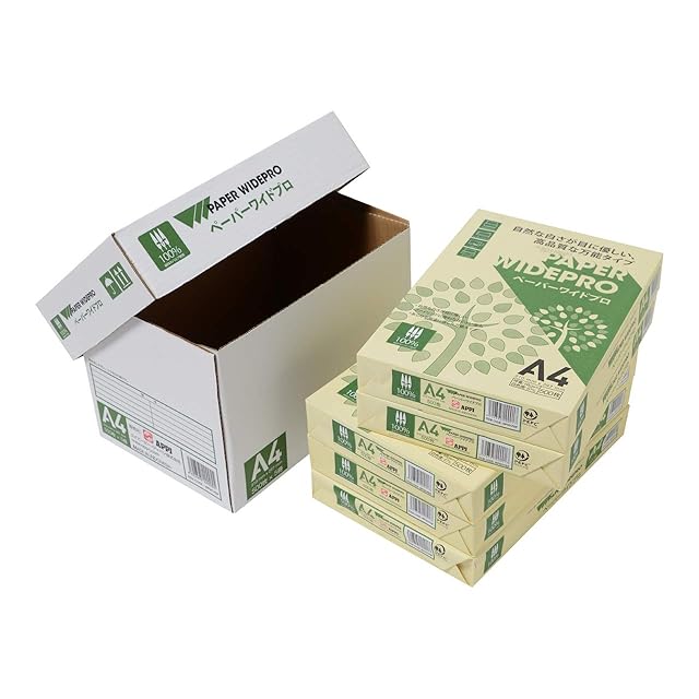 商品名:エイピーピー・ジャパン(APPJ) 自然色 コピー用紙 ペーパーワイドプロ A4 白色度87% 紙厚0.09mm 2500枚(500枚×5冊) PEFC認証
