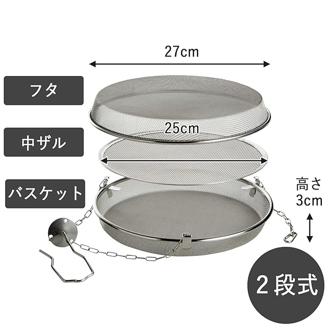 下村企販 干しかご ドライフルーツバスケット 2段 【日本製】 ステンレス サビにくい 食材を並べやすい 洗いやすい 衛生的 頑丈 ザル 干し網 干し野菜 干物 燕三条 39485 ギフト プレゼント 贈り物