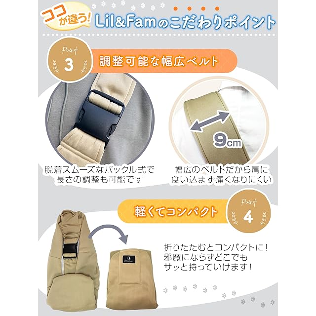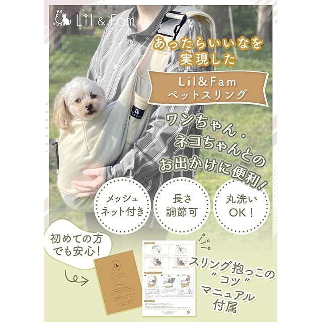 商品名:Lil&Fam 犬 抱っこ紐 ペットスリング キャリーバッグ ペットバッグ 飛び出し防止 メッシュネット付き 長さ調節可能 猫 キャリー (オフホワイト)