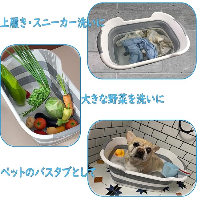 商品名:SOLPEX 折りたたみたらい 大型 洗い桶 犬バスグッズ 猫犬お風呂用 大容量 洗濯バケツ 水抜栓付 取っ手三つ付き ソフトタブ 洗濯 ベビーバス ペット用バスタブ 排水プラグが付く コンパクト 衣類・靴つけ洗い ソフトバケツ タブワイド キッチン アウトドア 持ち運び 内外に適用 多機能 安全素材