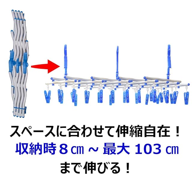 キクロン 洗濯 物干し ハンガー 伸縮ハンガー 30ピンチ ブルー ピンチ取り替え可能 角ハンガー スペーススリムⅡ