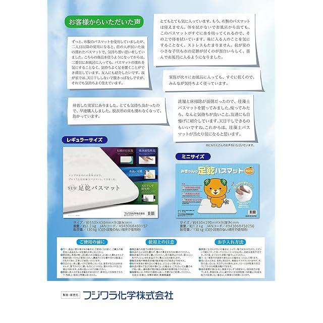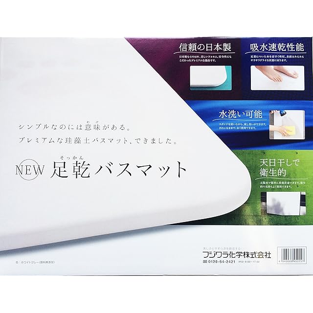 フジワラ化学 珪藻土マット NEW足乾バスマット W550×D430×厚み9mm -