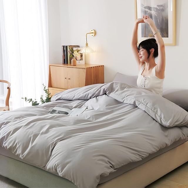 HOdo Home 布団カバー シングル 3点セット 掛け布団カバー ベッドシーツ ベッドカバー ボックスシーツ 枕カバー 寝具カバーセット 洋式・和式兼用 洗い替え 速乾タイプ ピーチスキン加工 (ライトグレー シングル)