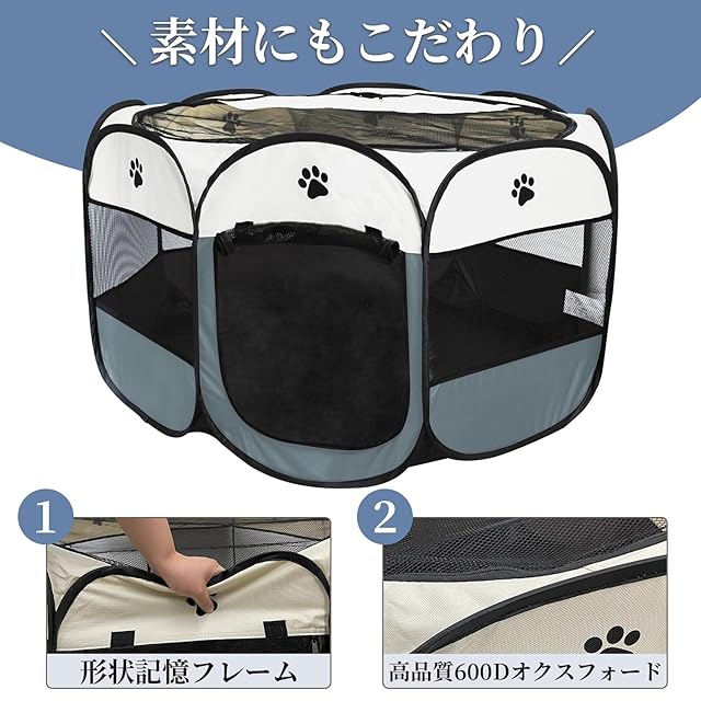 【頑丈で長持ち!ヤンチャ子もOK!】犬サークルは高品質600Dオクスフォードと形状記憶フレームを使用し、耐久性にも優れています。猫の爪研ぎはもちろん、ペットが暴れても壊れなりません。長く使え続けます。ヤンチャな大型犬や野良猫にも壊れる心配なく、安心して使えます。