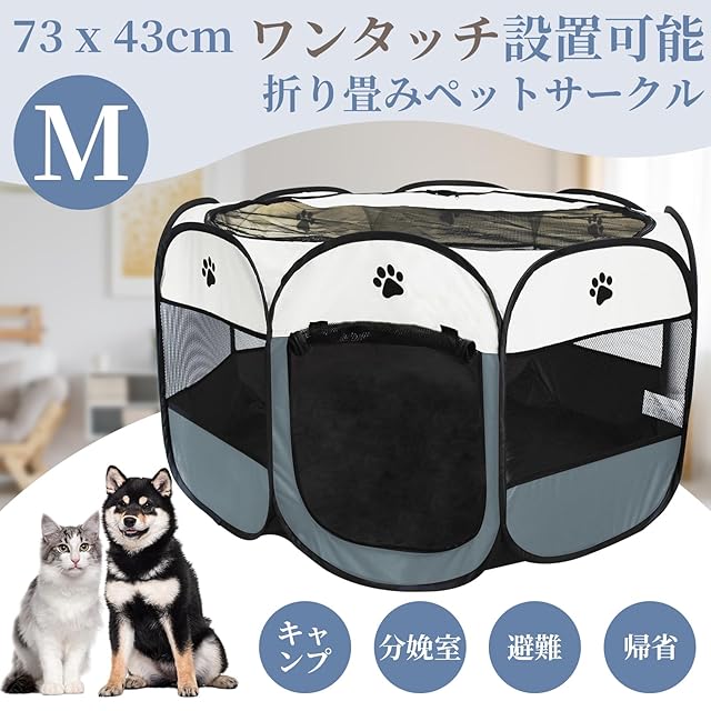 商品名:風織商社 ペットサークル 折畳み 犬 サークル 室内 73*73*43cm 猫 サークル 大型 八角形 ドッグハウス ペットサークル 屋根付き アウトドア 防災 猫 犬 ケージ 犬 サークル 折り畳み 室内 屋外 キャンプ メッシュサークル 頑丈 出産室 大型犬 小型犬 猫 (グレー, M, 8)