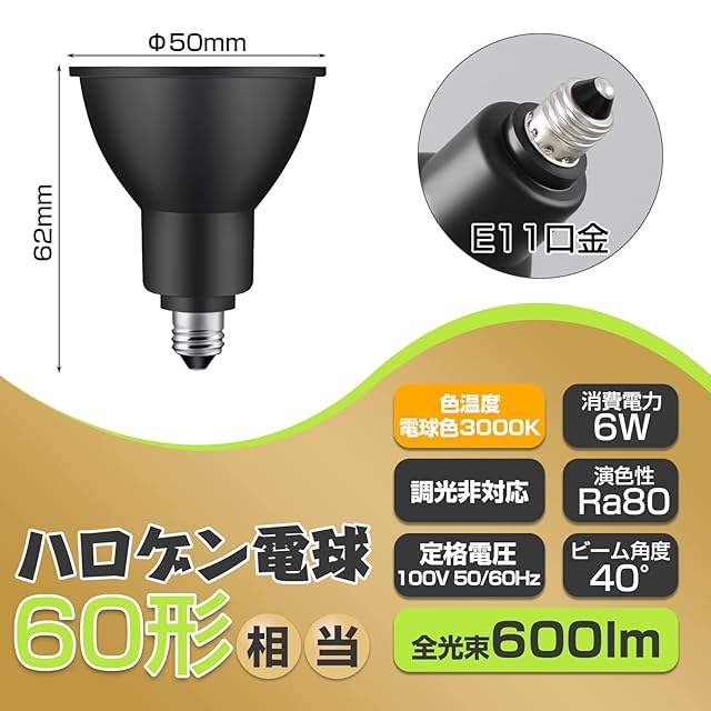 xydled LEDスポットライト E11口金 LED電球 60w形相当 電球色 600lm ハロゲン電球 JDRφ50 LEDライト (電球色ブラック 6個入り)