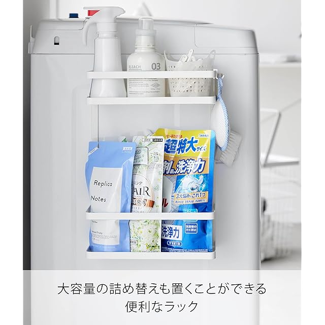 商品名:山崎実業(Yamazaki) 洗濯機横 マグネット 収納ラック 2段 ホワイト W28×D11.5×H40cm タワー tower ランドリーラック 大容量詰め替えも置ける 1800