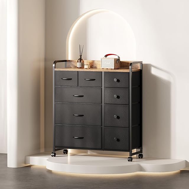 YeTom タンス 収納 チェスト 洋服収納 おしゃれ 洋服タンス キャスター付き 大容量 衣装棚 衣裝ケース リビング 引き出し 脱衣所 棚 衣類チェスト 箪笥 木製天板付き 和風 布製引き出し 転倒防止 安定感 L83×W29×H96cm(4段9杯 ピンテージ)