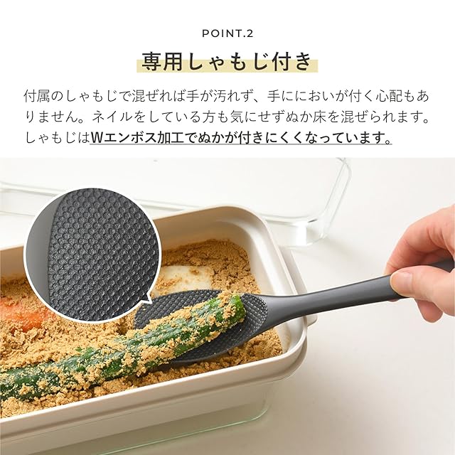 商品名:オークス レイエ ぬかどこ ボックス ぬか漬け 容器 中身が見える 専用 しゃもじ 付き コンパクト ベージュ 日本製