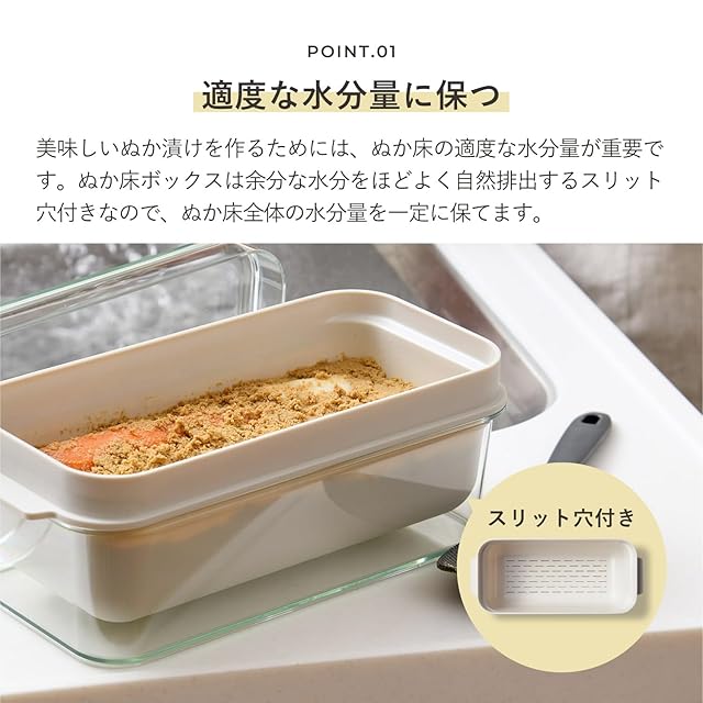 オークス レイエ ぬかどこ ボックス ぬか漬け 容器 中身が見える 専用 しゃもじ 付き コンパクト ベージュ 日本製