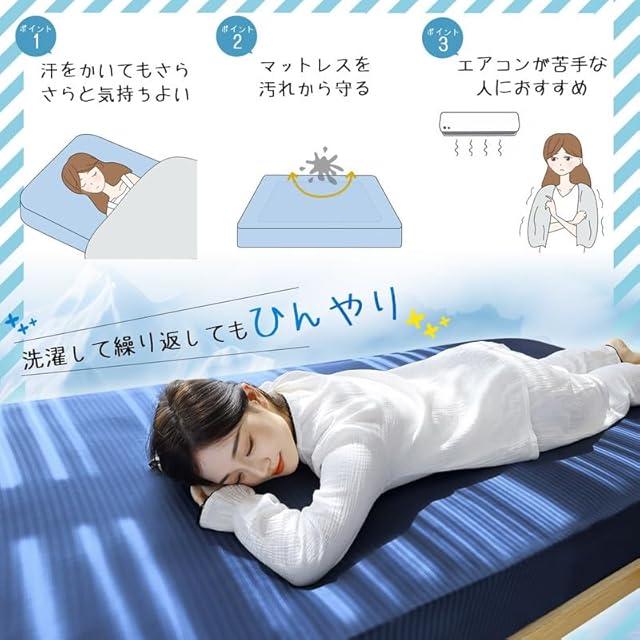 【商品サイズ・対応各2サイズ】(SS)スモールシングル(S)シングル兼用 。対応サイズ:約横85~100x縦200~210cm、まち3~28cmまで。【ひんやり冷感・通気】素材:ナイロン90%、ポリウレタン10%。接触冷感、速乾性通気性に優れ、蒸れなく、柔らかく、なめらかな肌触り、毛玉になり難く、ズレません。