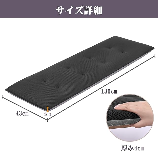 商品名:Shinnwa 竹炭入り 高反発 長座布団 除湿 消臭 座布団 お尻が痛くならない クッション 超通気 メッシュカバー 蒸れない 長方形 3人掛け ソファパッド ソファーシートクッション オールシーズン フロアクッション 滑り止め付き 43*130cm ブラック