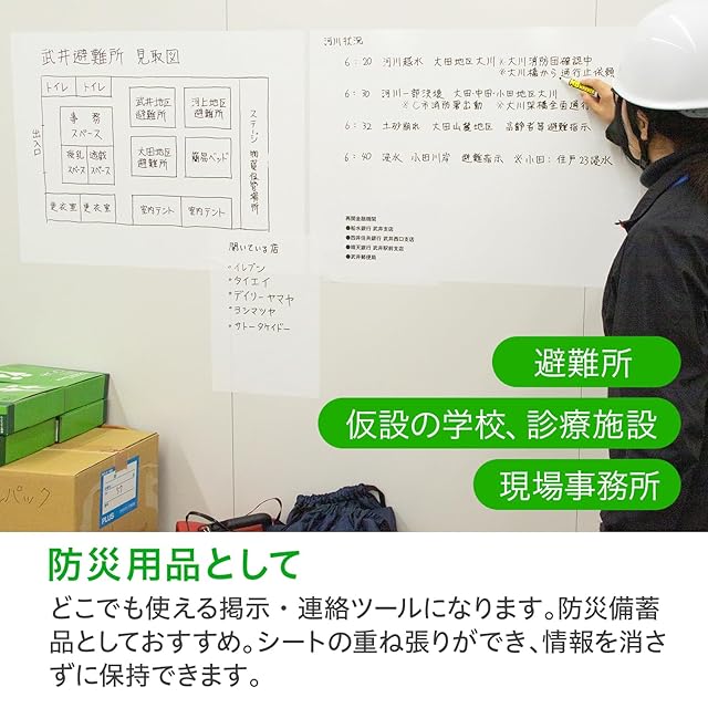 【特長】静電気で壁に貼り付き、ホワイトボードのように使える不思議な携帯できるシート/セロテープや画鋲が不要