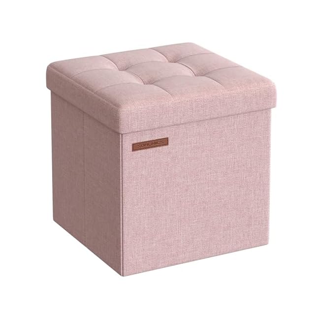 SONGMICS オットマン 収納 スツール 収納 ベンチ 収納ボックス 折りたたみ式 耐荷重130kg 収納 足置き 椅子 ボックス 持ち運びに便利 ふた付き 幅30×奥行き30×高さ30cm ピンク LSF028R01