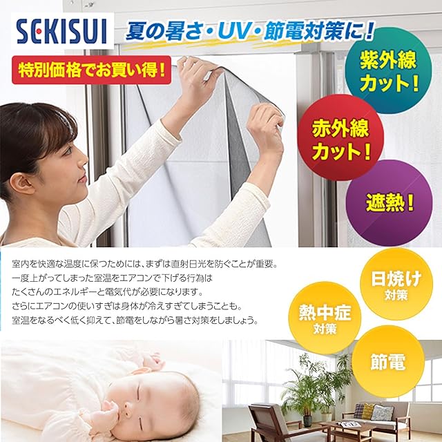 商品名:【2枚組】セキスイ 遮熱クールアップ 100×200cm 2セット 遮熱シート 窓ガラス 網戸 断熱 紫外線 UV カット 遮熱シート窓ガラス 日避け マジックテープ 簡単取り付け 窓用遮熱シート uvカットシート 窓 紫外線カットシート