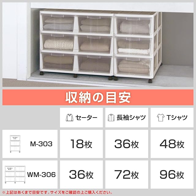 天馬(Tenma) たくさん収納できる衣装ケース 日本製 押入れ収納ケース キャスター付き中身の見えるクリアケース 引き出し収納ケース【組立式】【色 ホワイト】 【型番 M-303】 【幅37×奥行70×高さ62.5cm】