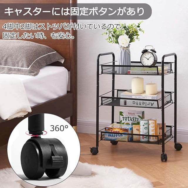 【キャスター付きで移動便利】移動、固定に便利なロック付きキャスター採用、360°自由に回転することもでき、方向を柔軟に変更しますので、清掃もやすくなります。平らでない表面でもぐらぐら揺れませんので安心に使えます。