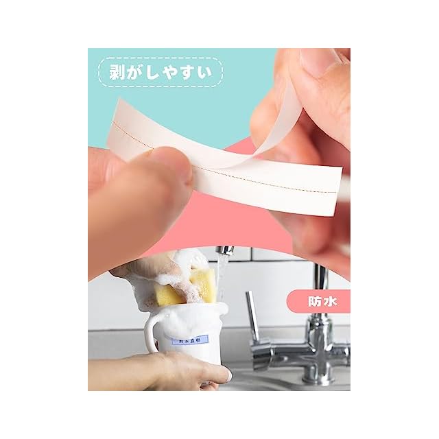 幅16mm×長さ4mのアップグレード仕様で、余白が少なく、段ボール、トレイ、花瓶、ガラス、木材、金属、PVC、紙など様々な素材の表面に貼付可能。剥がしても糊残りがありません。