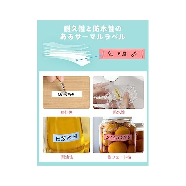 20種類以上の多彩な感熱ラベルに対応。防水・耐油・耐低温で耐久性に優れています。ただし、感熱ラベルは光や高温に弱いため、直射日光や高温を避けて保管してください。