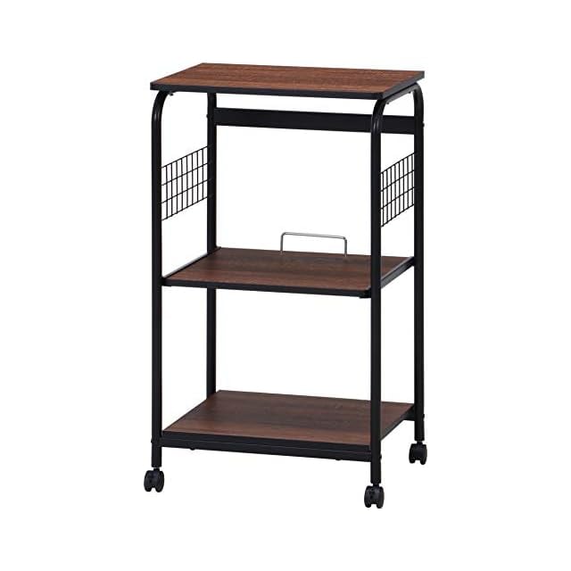 不二貿易 レンジ台 キッチンラック 幅51.5×41×高さ89.5cm ブラック ブラウン スライド棚 収納 レンジワゴン キャスター付き 15423