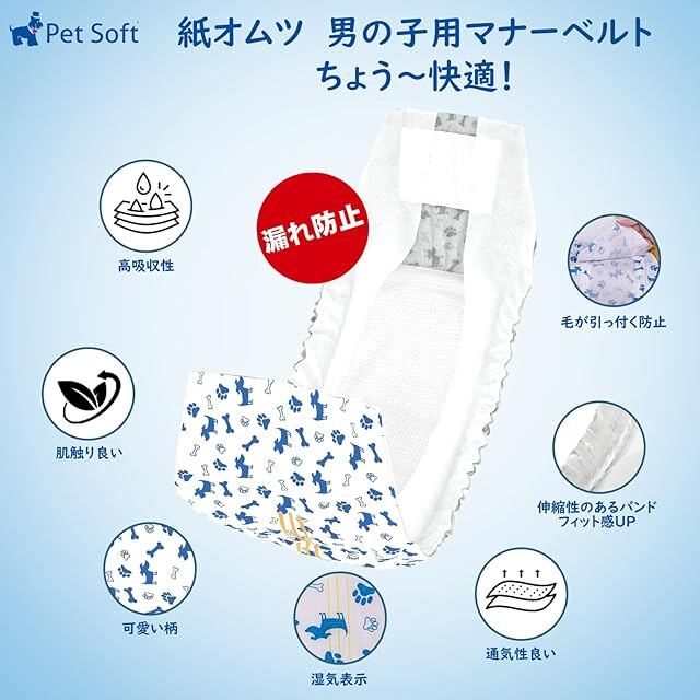 商品名:犬 おむつ 男の子用マナーベルト NEW 尿検出機能 高吸収性 ズレない 漏れにくいおむつウェア お漏らし対策 高齢犬介護 マーキング防止 消臭衛生 蒸れなく快適 腹巻風おむつカバー (20枚入少量パック, M)