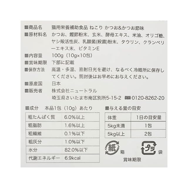 商品名:【公式】neco-ri (ねこり) 獣医師と共同開発した健康おやつ (1箱, かつお)