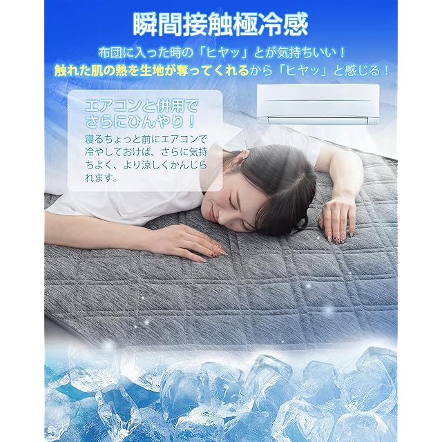 【業界トップクラス・瞬間冷却パワー】 ※冷感指標Q-max0.516(従来比+12%向上) 接触瞬間からひんやり感が持続する高密度ナイロン素材を採用。冷房や扇風機などを併用すると、さらにひんやりと気持ちよくお使いいただけます。