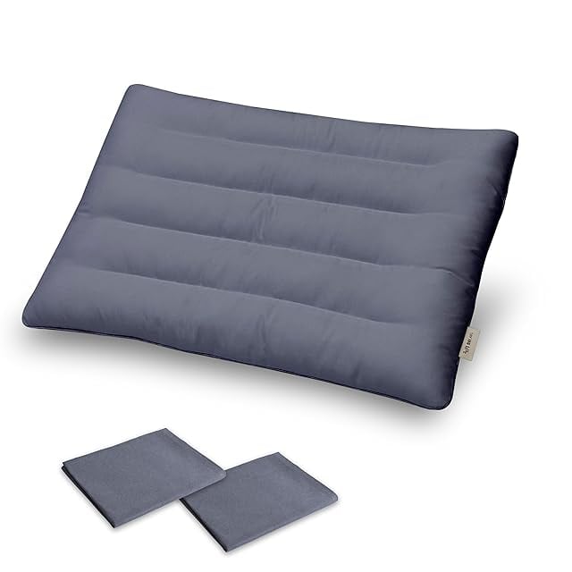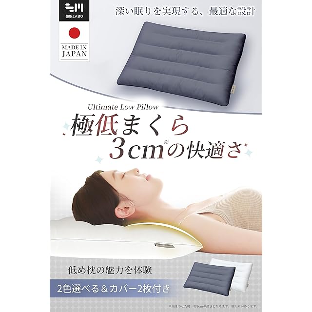 枕 低め 3cm 日本製 まくら 国産 薄型 高さ調節可 丸洗いOK 首 肩に優しい 仰向け うつ伏せ寝向け 60×40cm グレー(グレーカバー2枚付き)