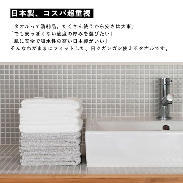 トランパラン 日本製 フェイスタオル 10枚セット 260匁 タオル 泉州タオル 速乾 吸水 ちょうどいい厚み 綿100% まとめ買い (ホワイト)